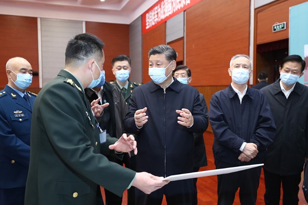 3月(yuè)2日(rì),中共中央總書(shū)記、國(guó)家(jiā)主席、中央軍委主席習(xí)近(jìn)平在北(běi)京考察新冠肺★炎防控科(kē)研攻關工(gōng)作(zuò)。這(zhè)是(shì)習(xí)近(jìn)平在軍事(shì)醫(yī)學研究院聽(tīng)取關于新冠肺炎疫情防控科(kē)研攻關的(de)總體(tǐ)情況彙報(bào)。